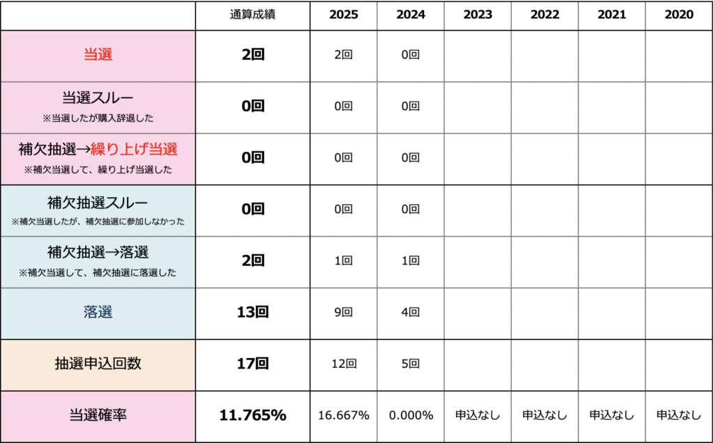 この数字は2024年から2025年12月末までのIPO抽選実績になります。