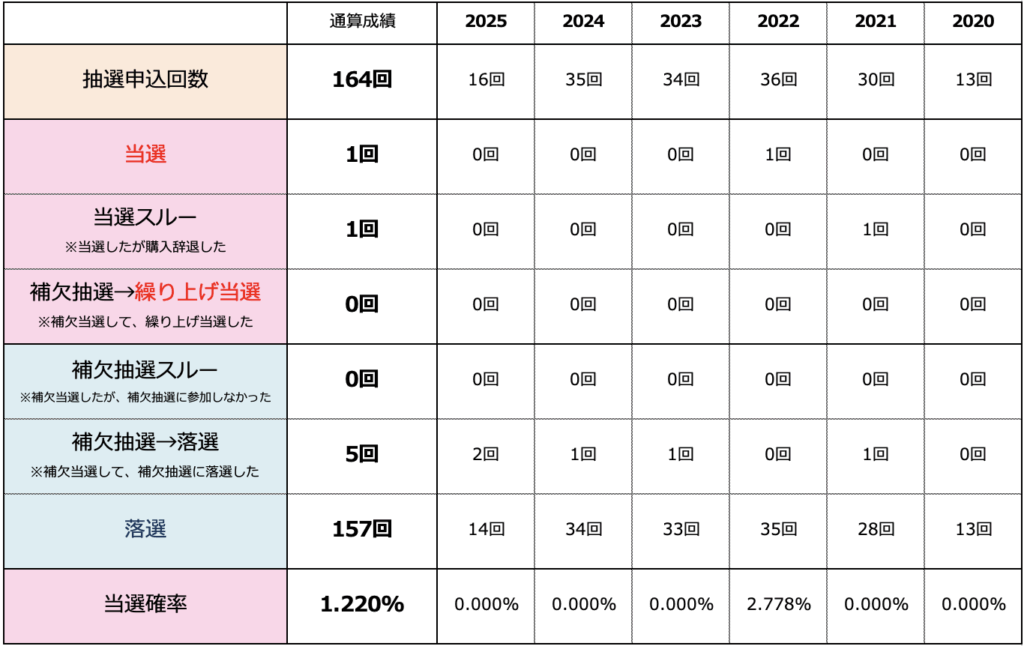いつかは当選すると信じてコツコツ申し込み続けましょう!