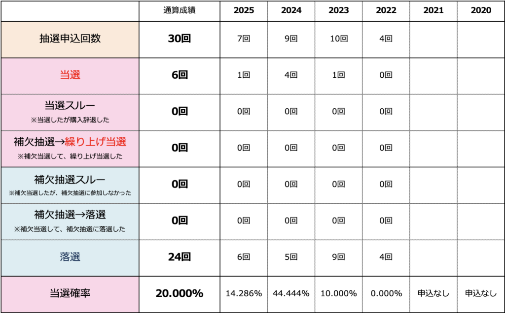 この数字は2022年から2025年12月末までのIPO抽選実績になります。