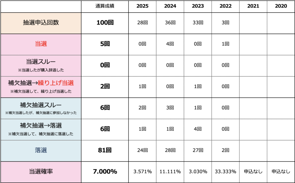 この数字は2022年から2025年12月末までのIPO抽選実績になります。