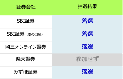 評判のいいIPO銘柄だったので主幹事のみずほ証券での当選を期待していましたが、