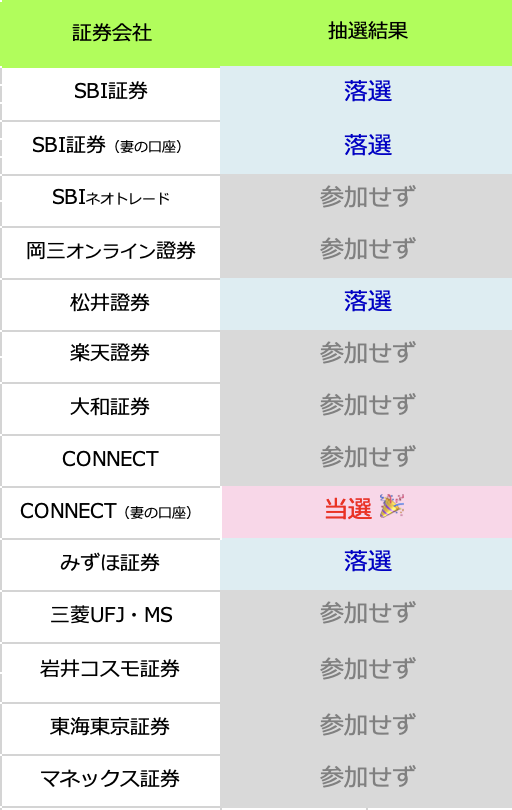 結果、コネクト証券で当選にビックリ🫢です。