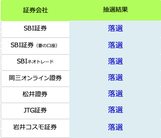 一応後期抽選の岩井コスモ証券が残っていますが、そもそも当選数が少ない(6,555口)ので期待はできそうにありません。