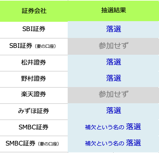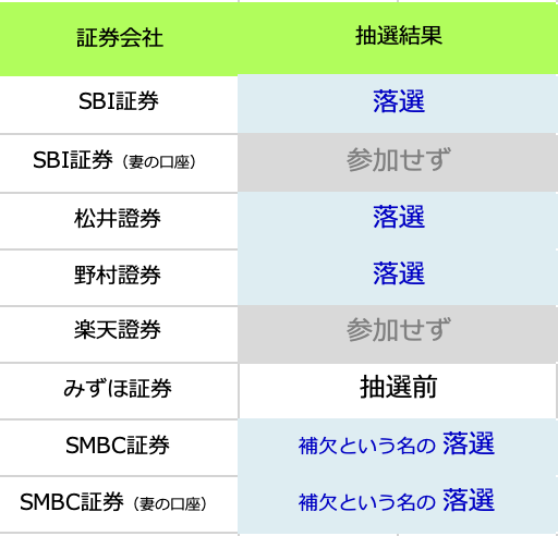 結果、明日発表のみずほ証券を除いて全て落選となりました😭