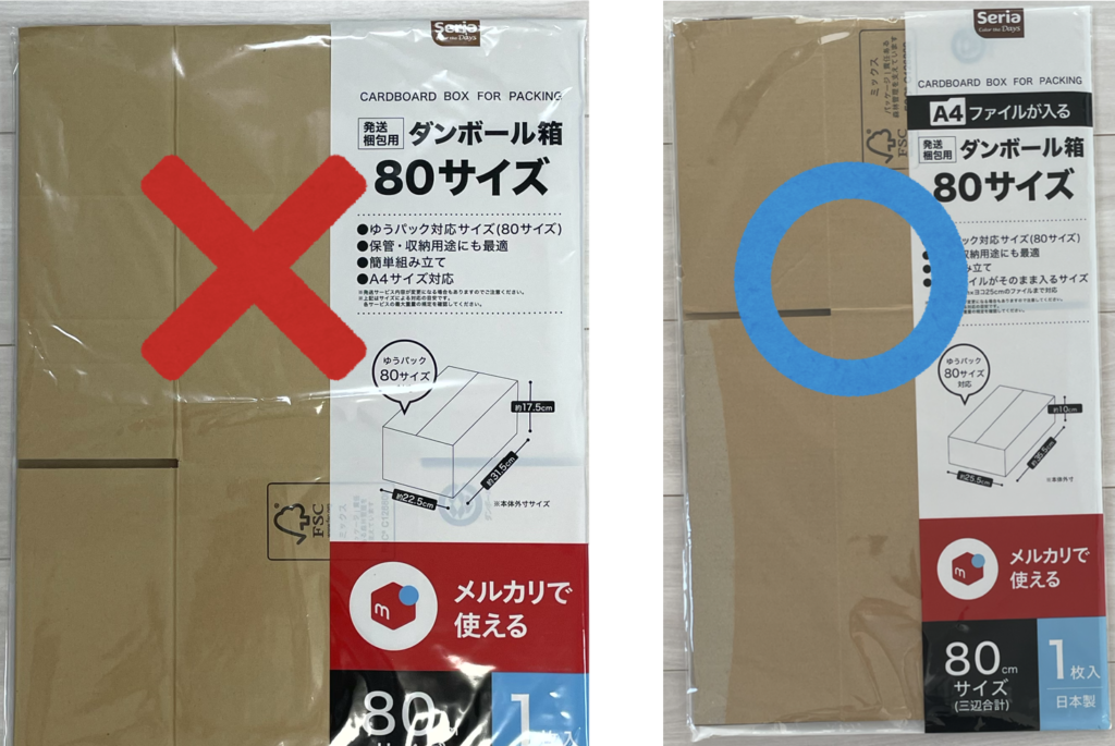 セリアの80サイズの箱は2種類あってパッケージも似ているので間違いやすいです。
