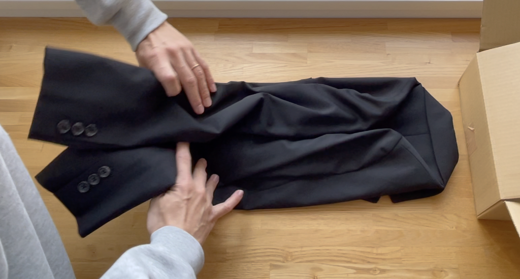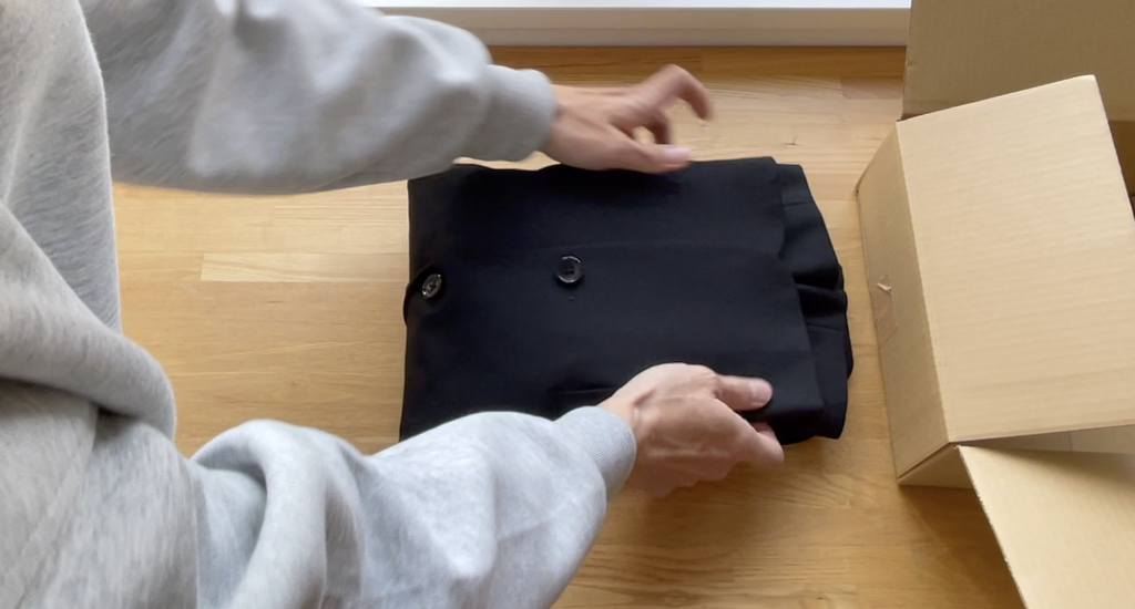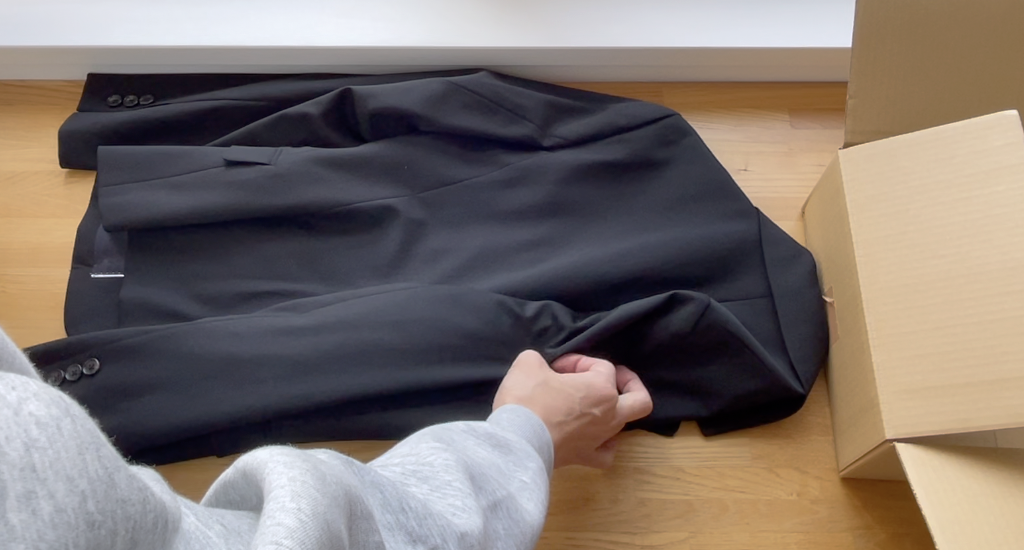 それではこの箱に梱包するためにスーツをたたんでいきます。