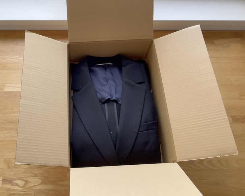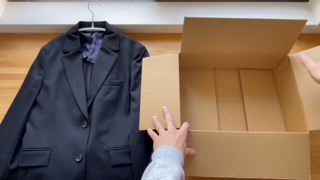 メンズのスーツの場合はサイズ的に同じ箱では梱包できないと思うのでちょうどいい箱がないか色々探してみようと思います!