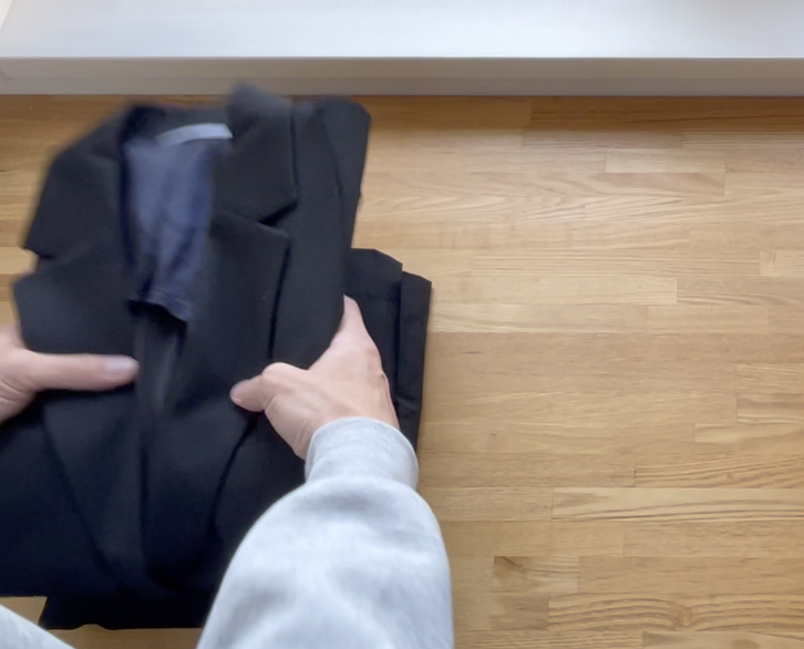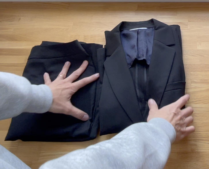 ジャケットが上手くたためたら最初にたたんだスカートの上にジャケットを重ねます。