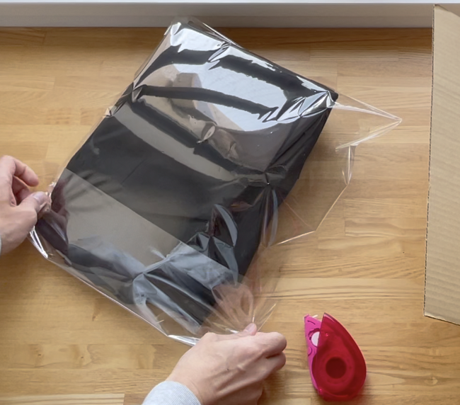 次に商品を水濡れ防止の袋に入れます。