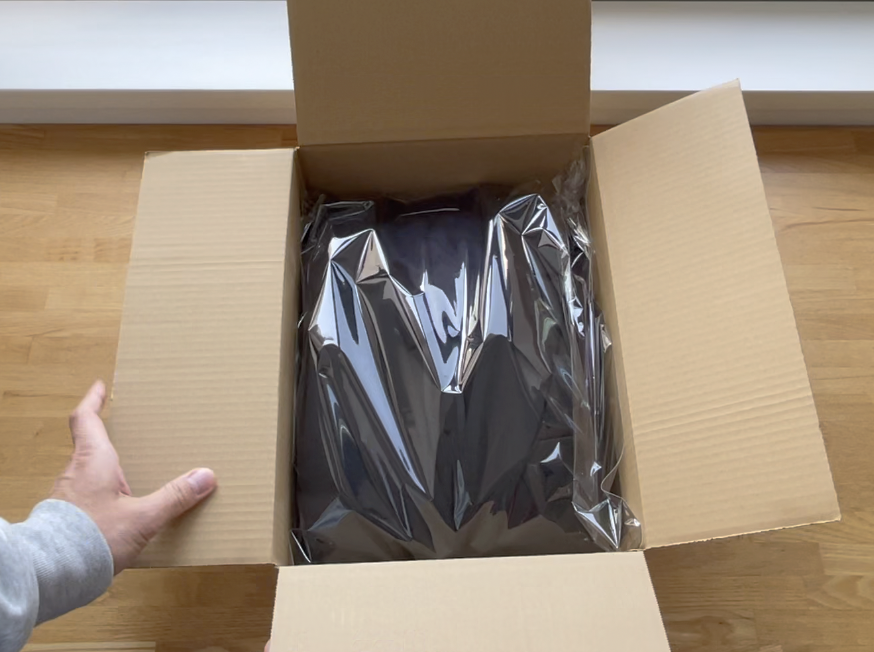 ジャケットをたたむ前に梱包に使用する段ボールを紹介します。