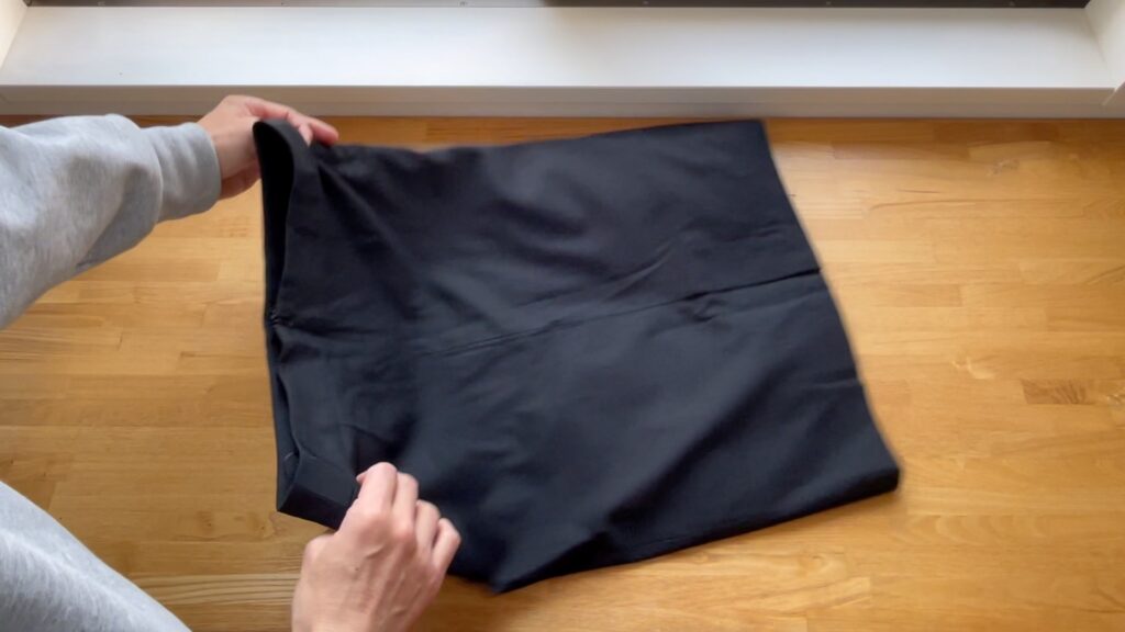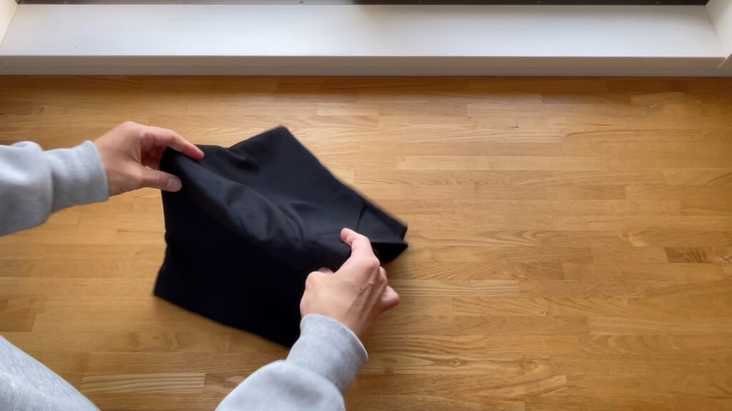 反対側も同様に袖口を手前に向けて折りたたみます。
