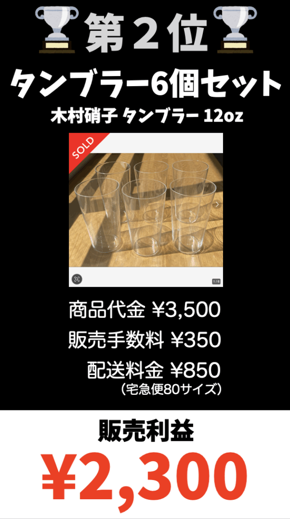 グラスセットが2セット売れました。商品代金はそこそこ高いんですが、配送方法が宅急便80サイズで送料850円かかるのがちょっと痛いです😭