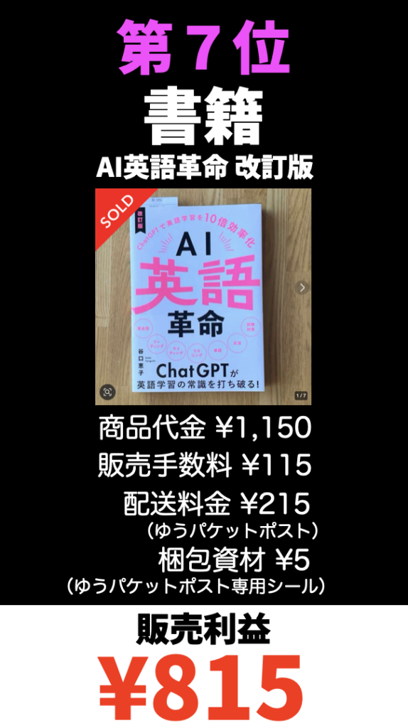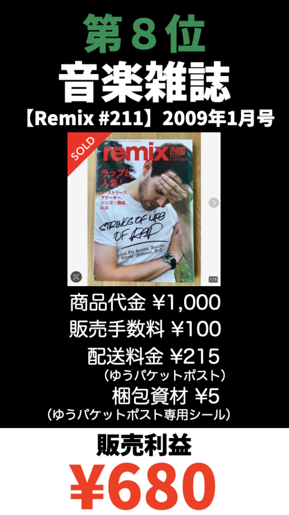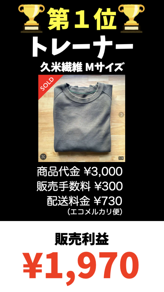 ※利益は商品代金から手数料と配送料を引いた金額です
