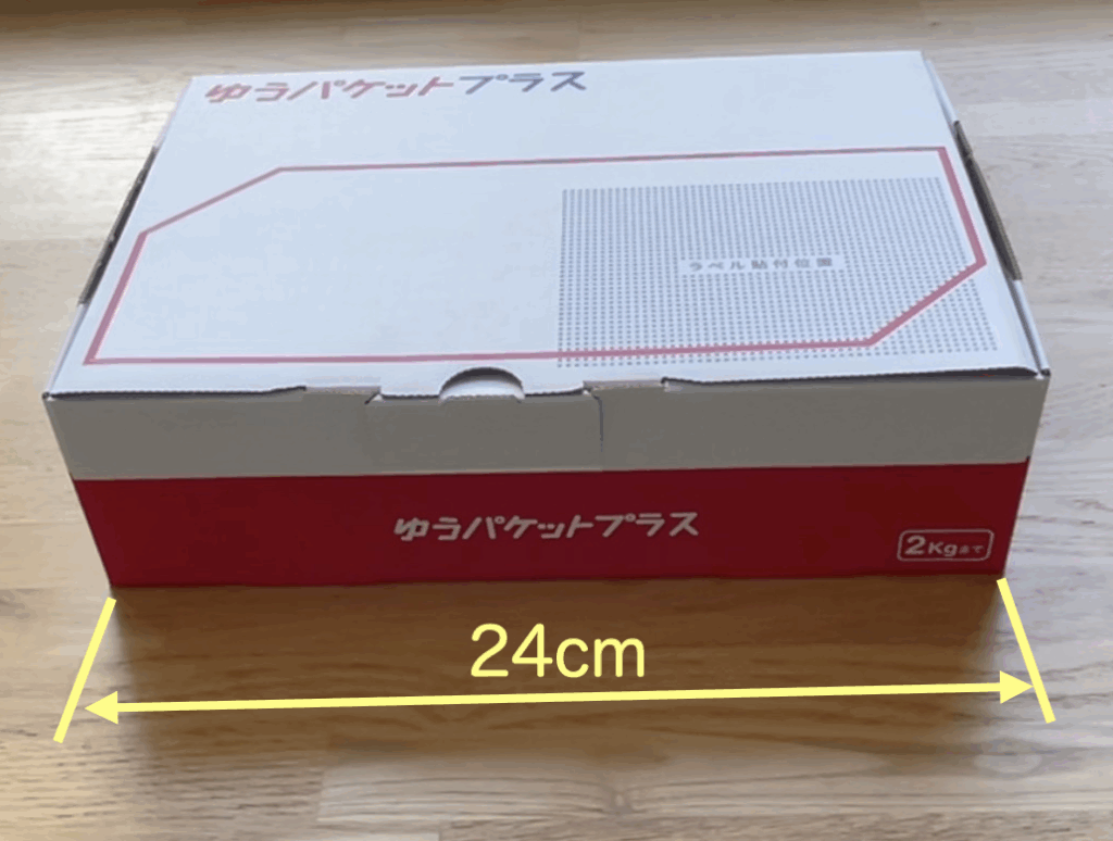 実際に商品を箱に入れて梱包可能か確認してみるのが一番いいので、ゆうパケットプラス専用箱を1枚手元に持っておくことをお勧めします。