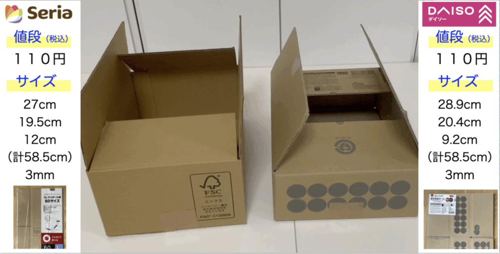 今回4種類の80サイズの市販の箱を比べてみました!