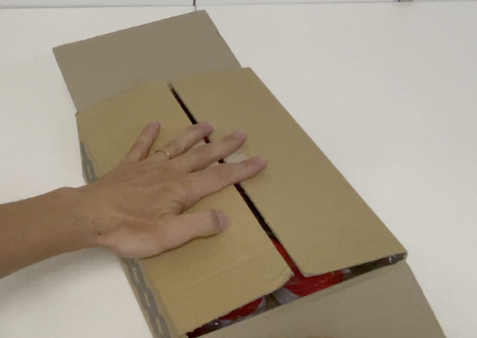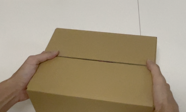 このままでは配送中に誰かに箱を開けられてしまうので、箱が開かないようにテープで留めておきます。