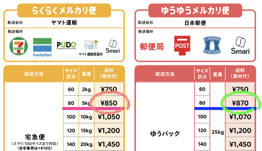80サイズの場合、「らくらくメルカリ便」の方が送料が少し安くなります。