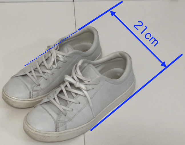 例えば下のスニーカーはサイズ23.5cmですが、23.5cmは靴の内側、インソール部分のことなので靴の全長となるともっと長くなります。