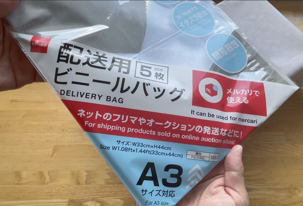 袋はダイソーのA3配送用ビニールバッグを使いました。