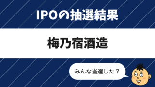 IPO抽選結果 【IPO抽選結果】梅乃宿酒造 梅乃宿酒造公募・売出価格:600円(仮条件:570~600円)当選口数:21,684口(当選口数ランキング6位)※記事執筆時の順位抽選日:2026年4月16日(木)上場日:2026年4月24日(金)IPO株、梅乃宿酒造の抽選結果です!今回4... 2026.04.16 IPO抽選結果