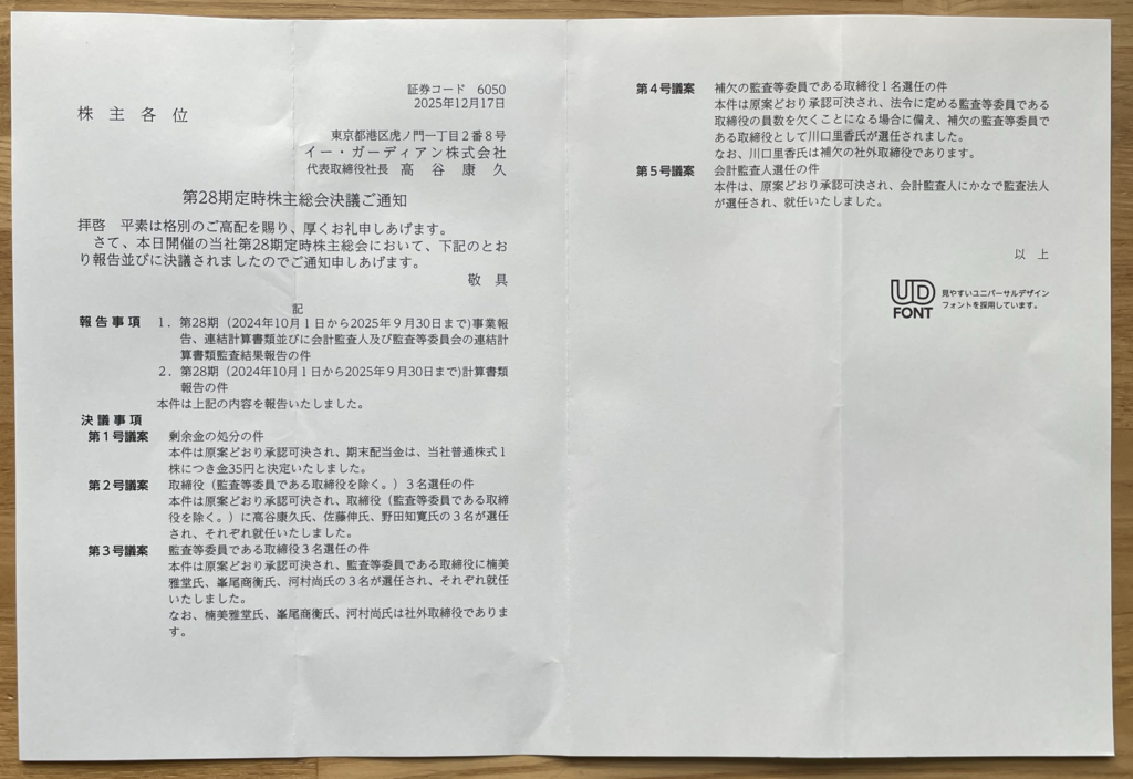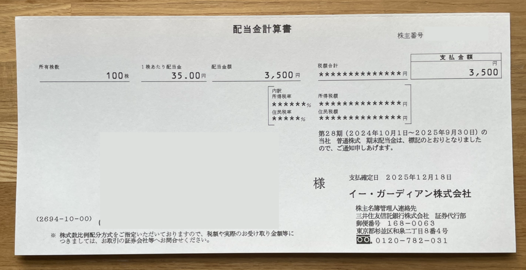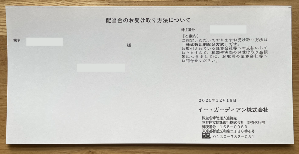 2025年9月末時点で100株保有し続けていたので、9月末権利の優待として届きました!
