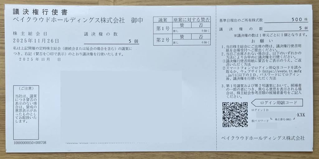 議決権の行使はQRコードを読み込んで済ませます。