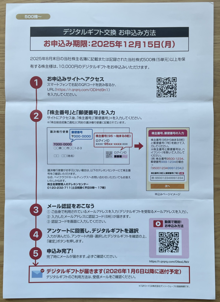 優待案内到着日:2025年11月中旬