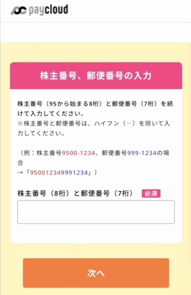 ①株主番号・郵便番号を続けて入力