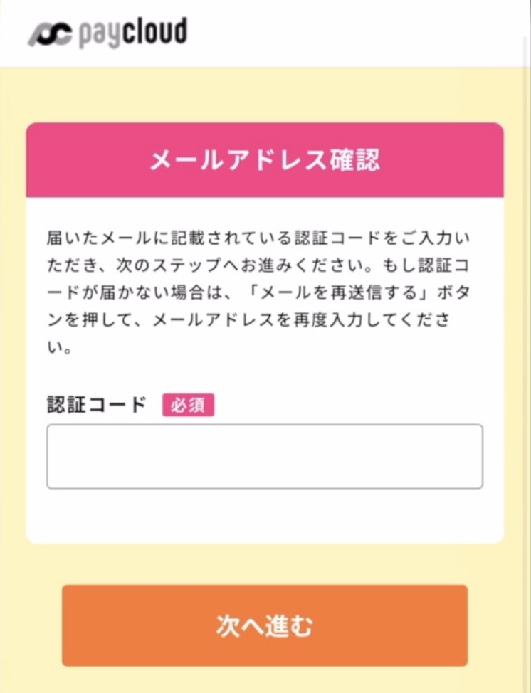 ③メールアドレス宛に届いた認証コードを入力。